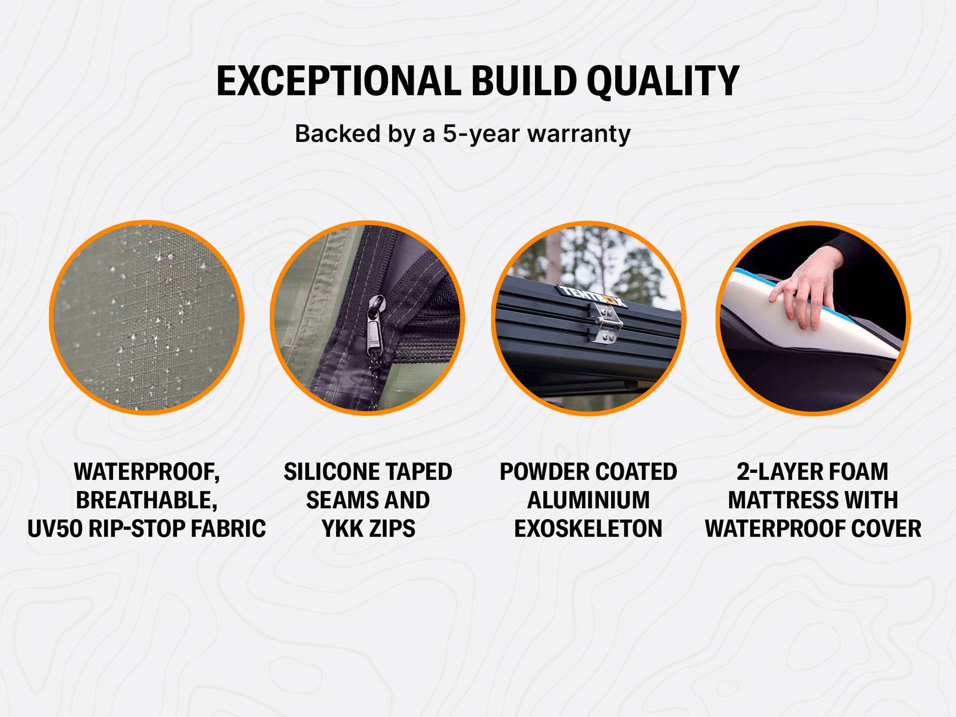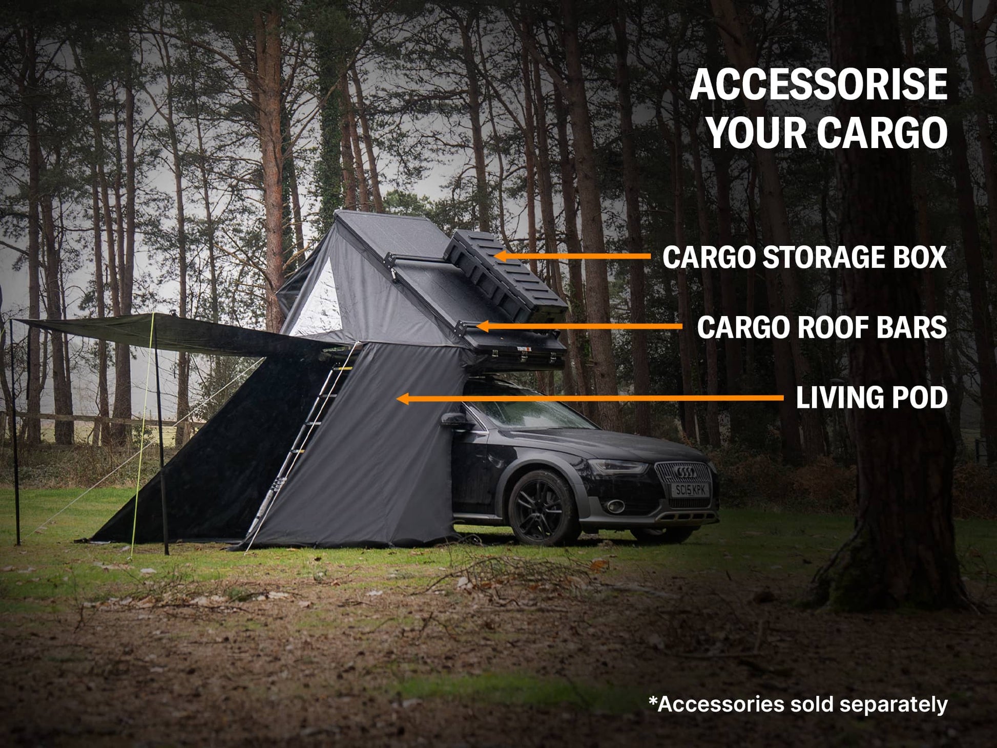 Built to be rugged, the Cargo can handle anything from weekend trips to hardcore adventures. It has the fastest setup in our range at just 30 seconds, and you can leave your duvet and pillows inside; you'll be the envy of fellow campers! Combine with the Cargo Roof Bars to mount additional gear on top (bikes, surfboards, kayaks, etc.)
